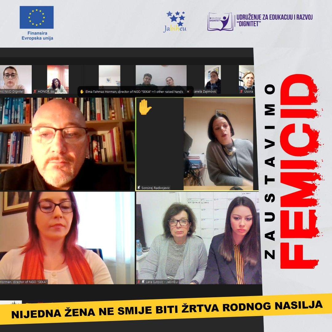 Online edukaciji pod nazivom “Metodologija za kontinuirano praćenje i evaluaciju efikasnosti i efektivnosti rada svih nadležnih aktera uz aktivno učešće ženskih organizacija civilnog društva” prisustvovalo je oko 100 predstavnika/ca nevladinih organizacija i institucija iz 🇧🇦, uključujući PU ZDK, PU TK, PU HNK, PU ZHK, Općinski sud Bugojno, tužilaštva.