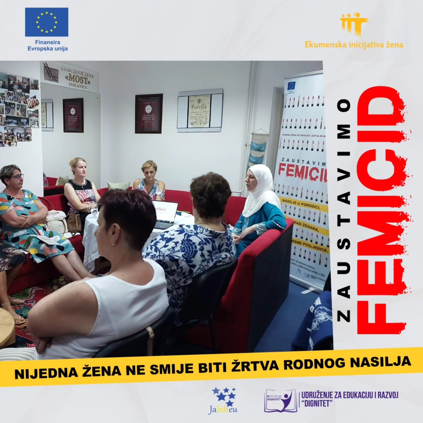 Navedenu radionicu smo realizirali u saradnji sa Udruženjem JaBIHEU u sklopu projekta “Unapređenje pravne i socijalne matrice za sprječavanje femicida i rodno zasnovanog nasilja u BiH”.