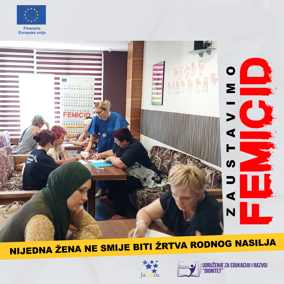 Udruženje Dignitet, u saradnji sa JabihEU, organizovalo je, 02.08.2024. godine edukaciju za Udruženje žena „NERA“ Konjic u sklopu projekta “Unapređenje pravne i društvene matrice za sprječavanje femicida i rodnozasnovanog nasilja u BiH”.